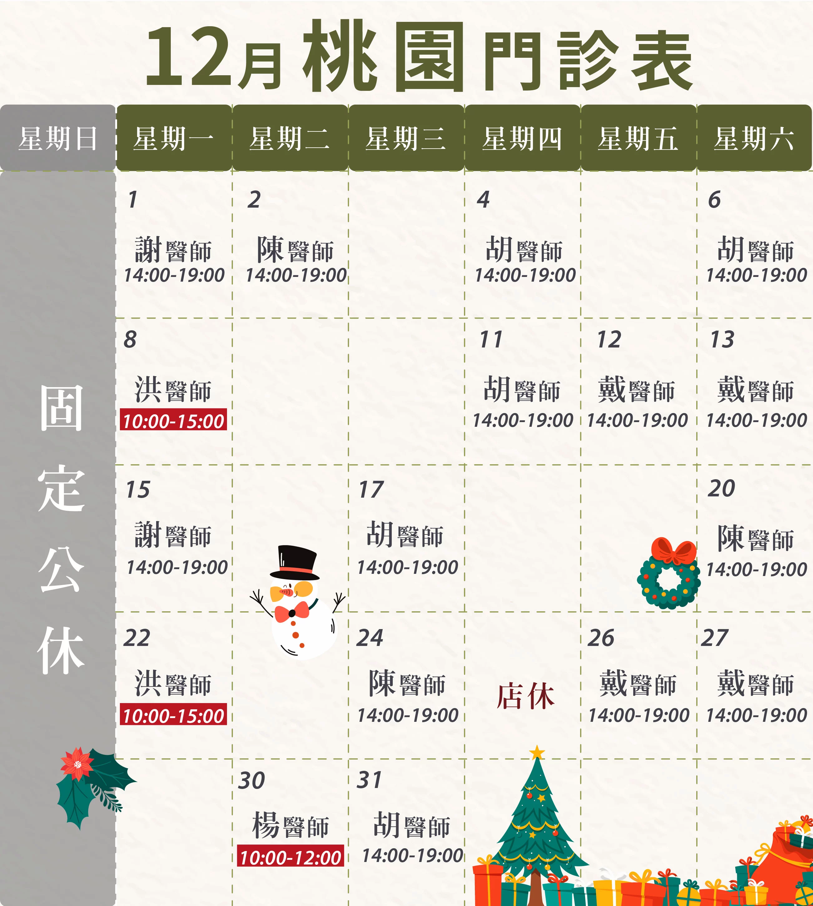 12-1月門診時間