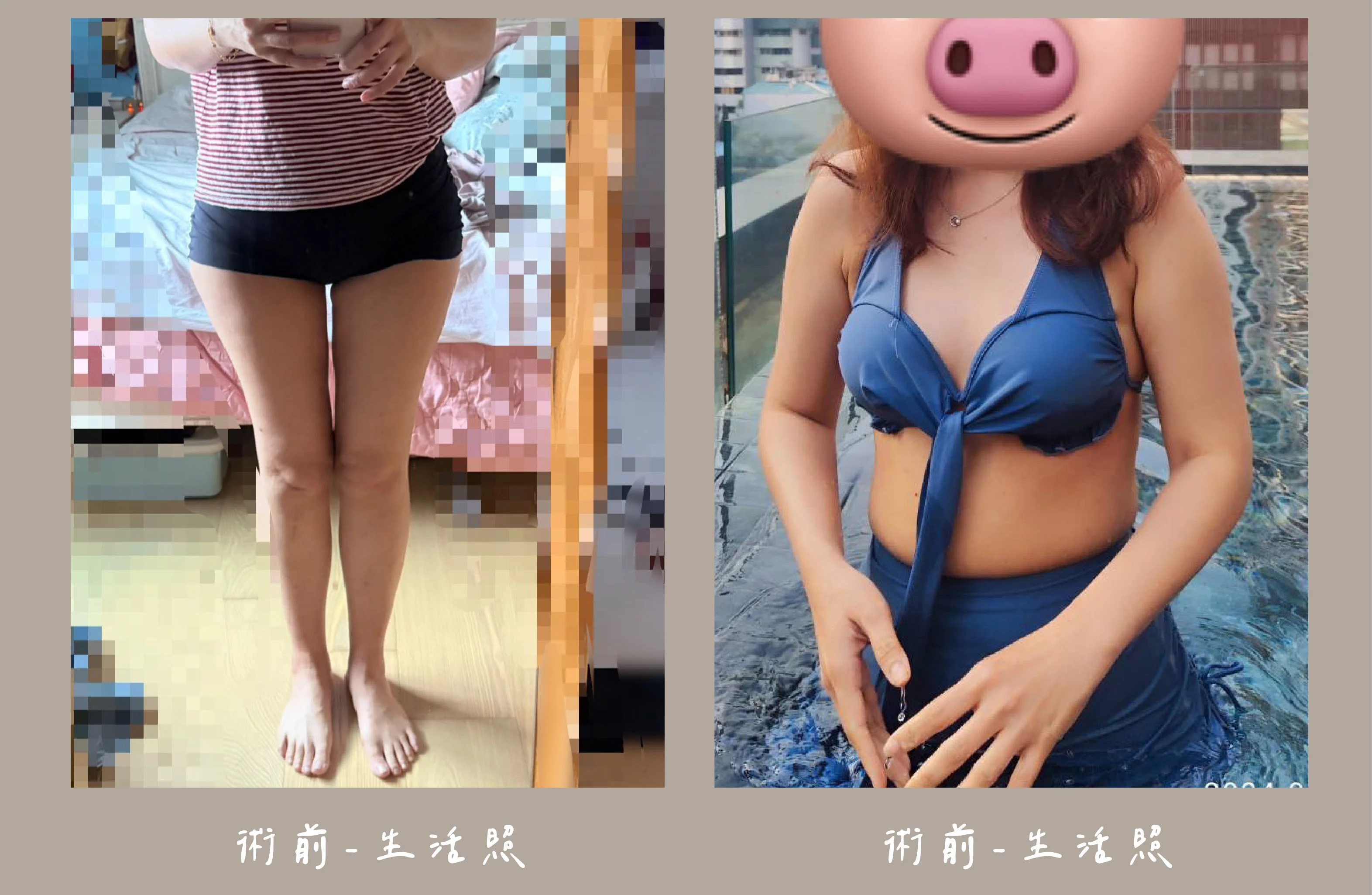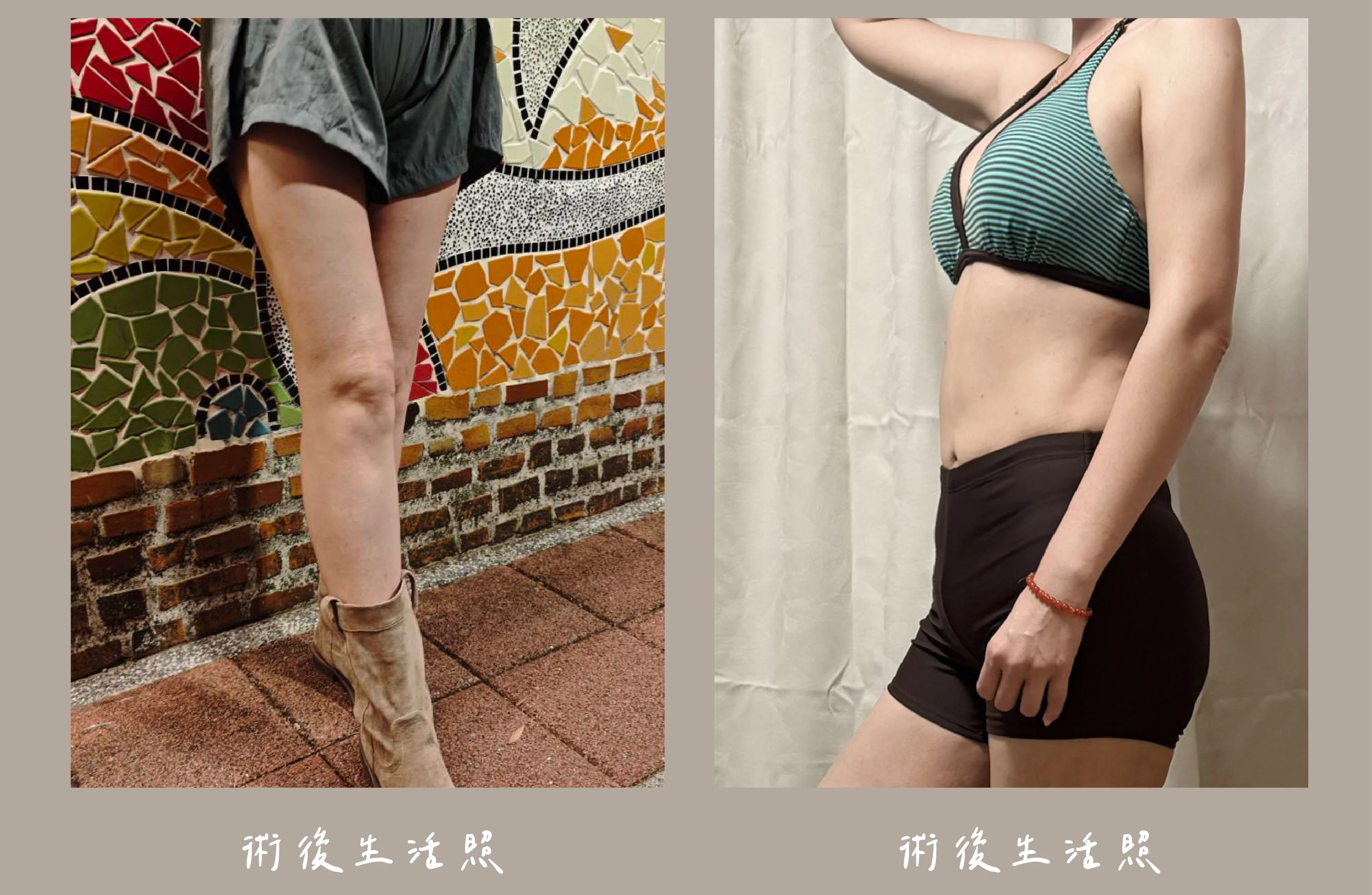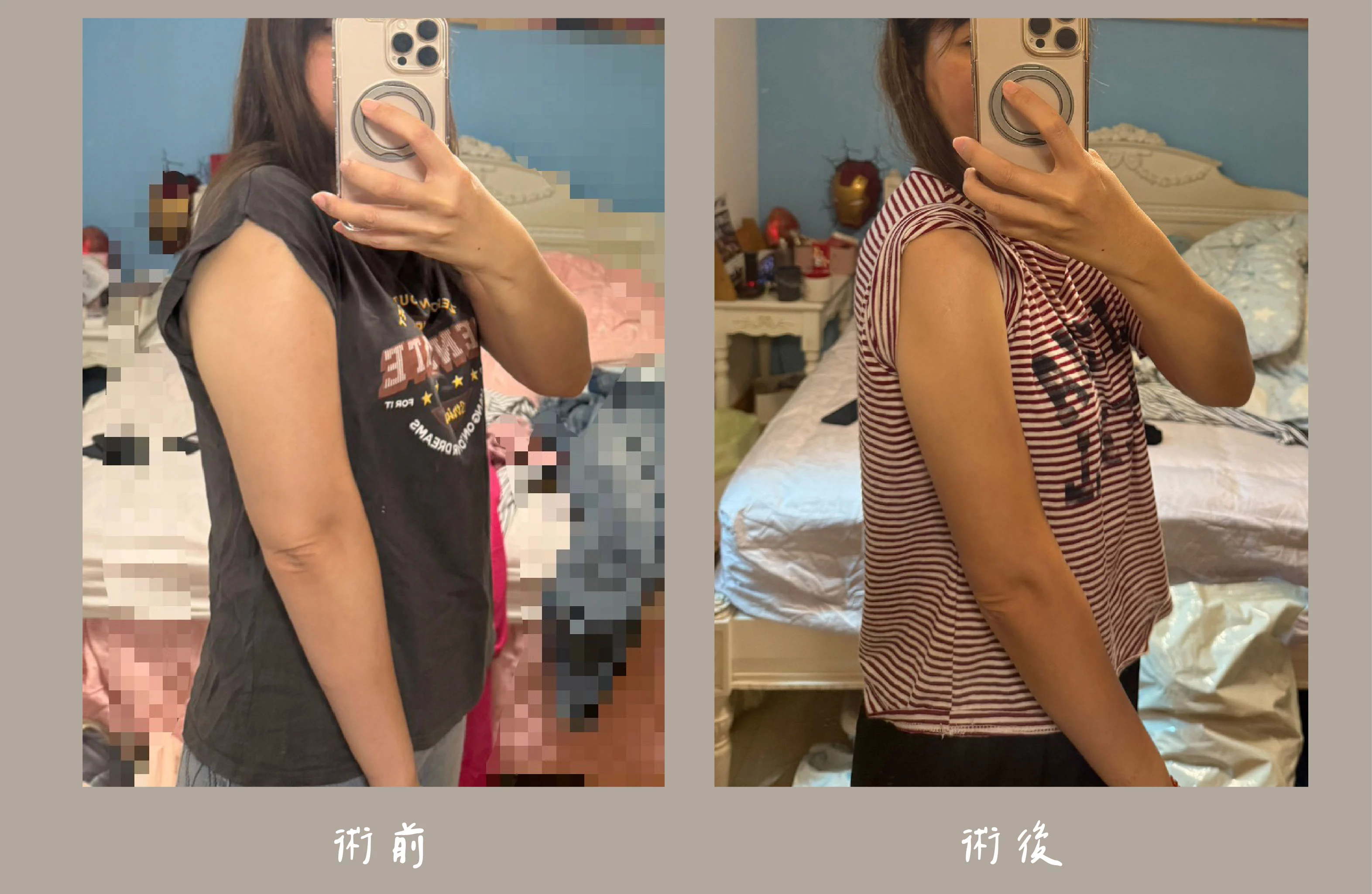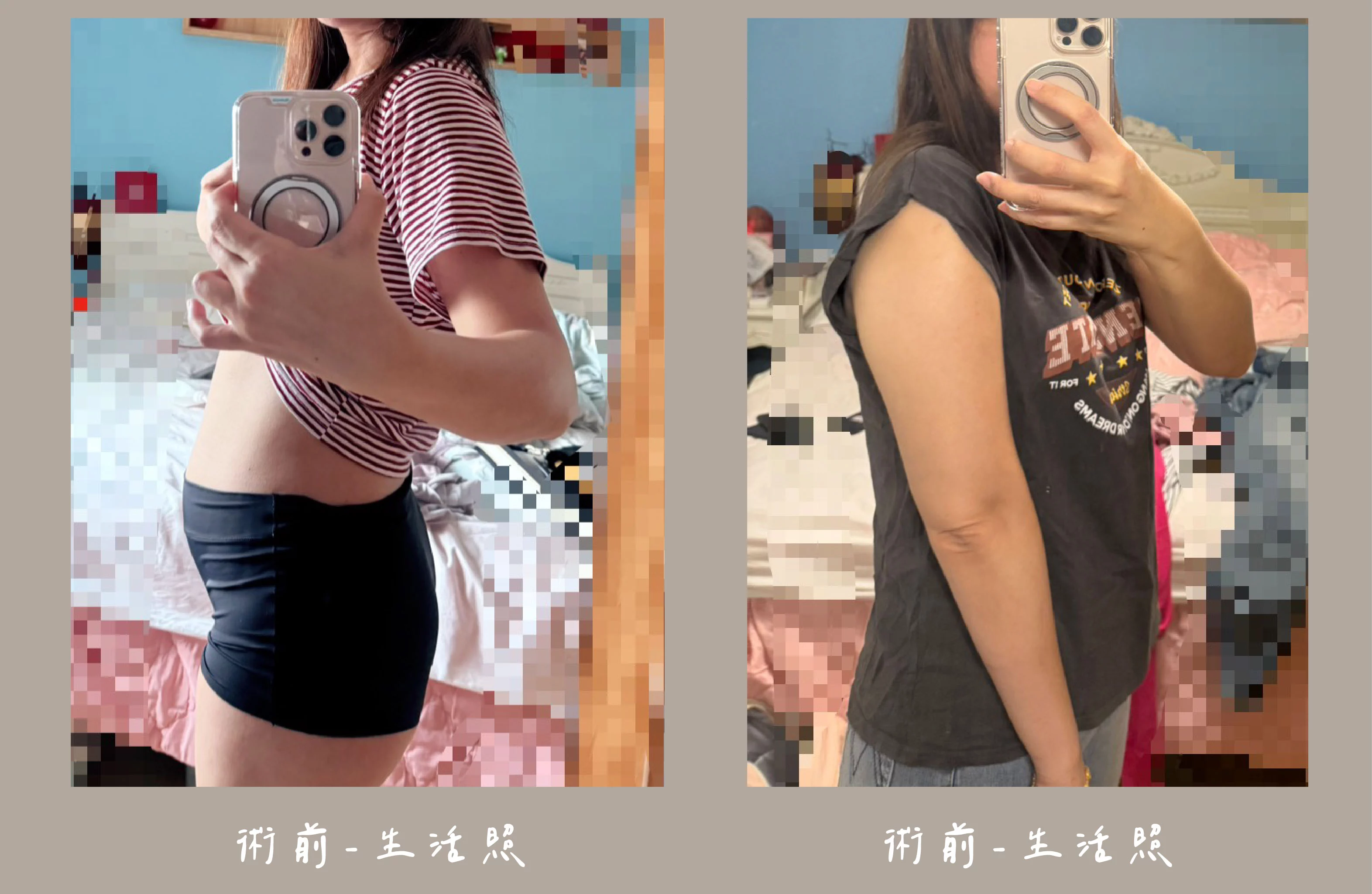 ▶手+上下腹+大腿前+大腿外+背+補胸PRP+補臀|術後生活照