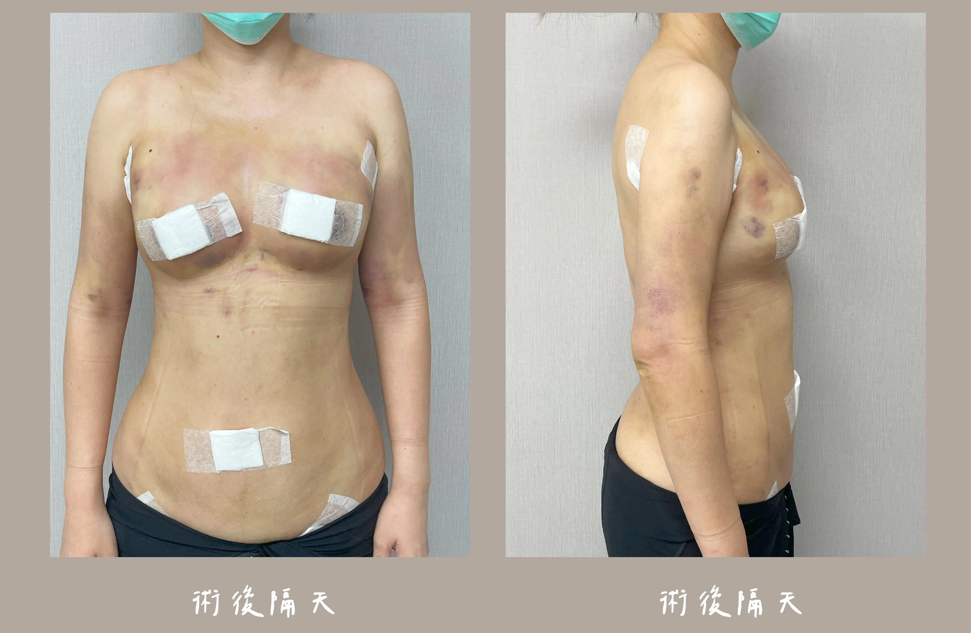 ▶手+上下腹+大腿前+大腿外+背+補胸PRP+補臀|術後隔天