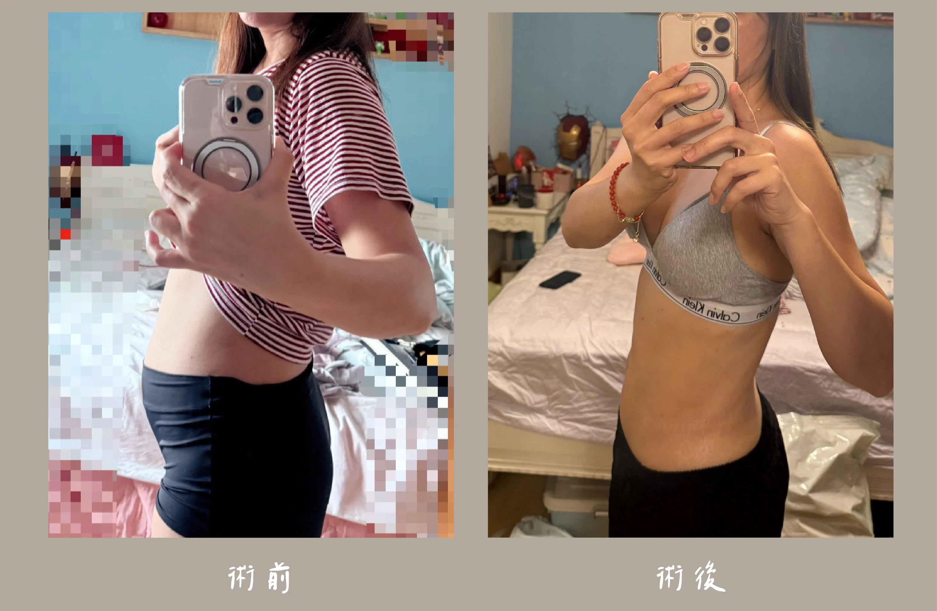 我的游泳圈真的不見了!肚子平坦到我穿緊身T恤都沒在怕。